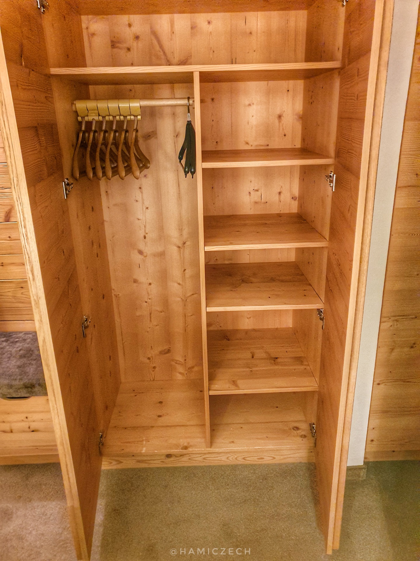 I was directly excited about the big closets, we each had our own. A cloth bag with the hotel logo was prepared in the closet (and we thank you very much for that, because we really didn't take the wellness bag), and there were slippers and bathrobes. In the closets you will also find a safe and other small items. There are also coat hangers at the door.